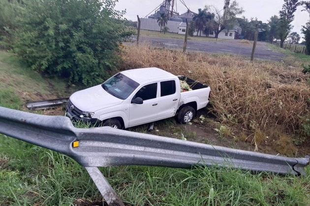Allí, cuando llovía en la región, una camioneta VW Amarok escapó del control de su conductor, salió de la cinta asfáltica y terminó impactando debajo del terraplén, contra una cuneta.