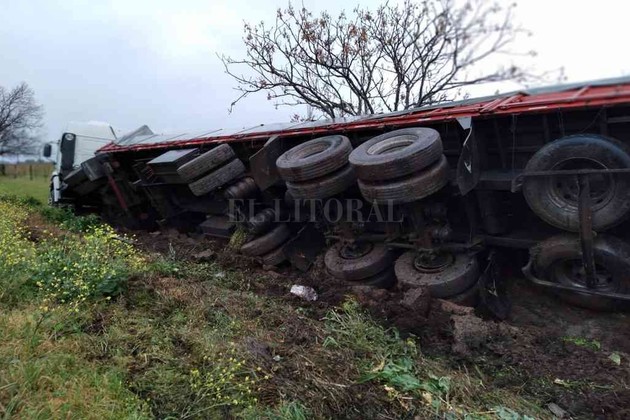 Durante la mañana del jueves un camión de gran porte volcó sobre ruta nacional 19, km 20 (altura del peaje de Franck), en un hecho que por fortuna no deparó desgracias personales.