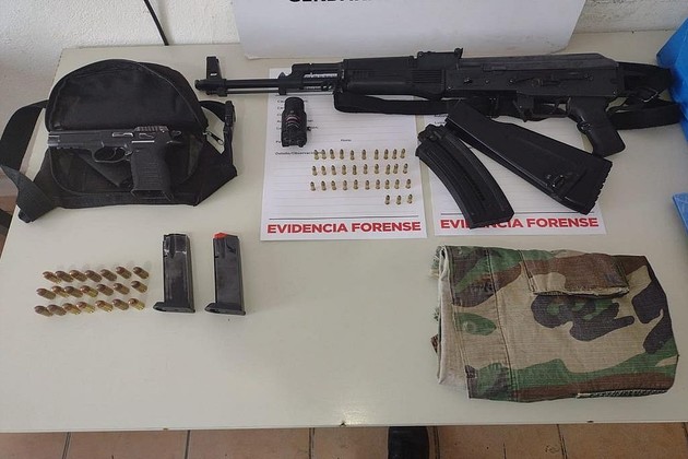A raíz de ello, los agentes le hicieron señas para que detuviera la marcha y al inspeccionar las pertenencias del motoquero hallaron una carabina semiautomática AK-47, de origen alemán, marca GSG, con cargador colocado con 23 municiones calibre .22 LR. Asimismo, en la riñonera del conductor los gendarmes encontraron una pistola Tanfoglio modelo Delta Force con 11 cartuchos, un cargador con 10 municiones calibre .45 ACP y otras 10 pertenecientes a la carabina.
