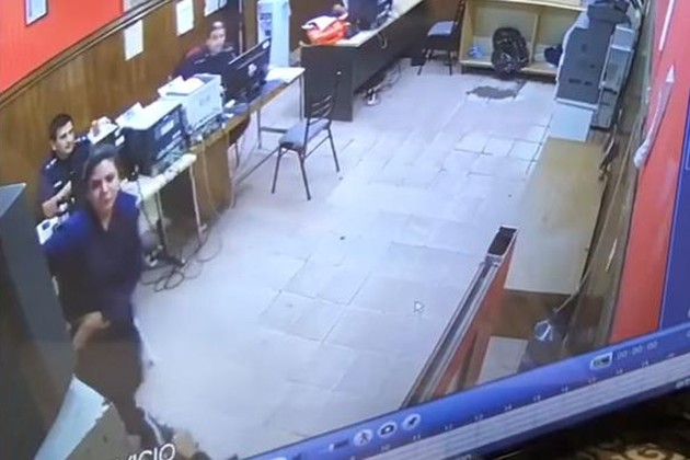 Según quedó registrado en las cámaras de seguridad de la comisaría, uno de los delincuentes quedó en la puerta como "campana", otro detrás de una puerta de blindex y los dos restantes llegaron hasta la sala de guardia de la seccional y comenzaron a disparar contra los cuatro efectivos que se hallaban en ese momento realizado tareas administrativas.