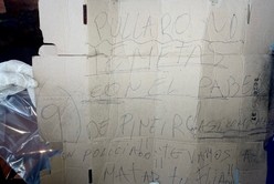 Los atacantes dejaron otro mensaje escrito en un cartón –similar al dejado en la sucursal bancaria–, que también estaba dirigido al gobernador Maximiliano Pullaro (relacionado con la intervención y requisa en la cárcel de Piñero y la posterior reubicación de presos).