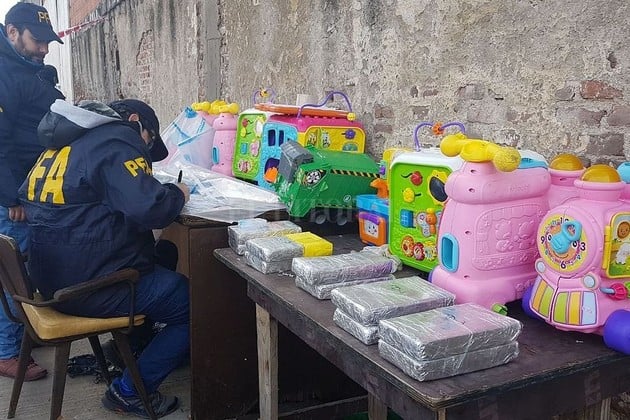 Las modalidades para traficar droga por parte de las bandas criminales no dejan de reinventarse y es por eso que el Ministerio de Seguridad de la Nación instruye a las fuerzas federales para estar alertas y frustrar estos intentos. Fue así que personal de la Policía Federal que realizaba un control en una zona de expresos del barrio porteño de Barracas (sobre las calles Toll y Pedriel), donde usualmente suelen intentar contrabandear todo tipo de bienes, interceptaron un Chevrolet Corsa cargado con juguetes usados que escondían 20 kilogramos de cocaína.