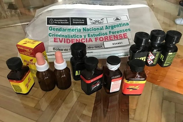 En los procedimientos, los gendarmes secuestraron 32 frascos de “ Popper”, dispositivos electrónicos y documentación relevante para la causa. En tanto, el farmacéutico quedó supeditado a la investigación en curso pero continuaba en libertad