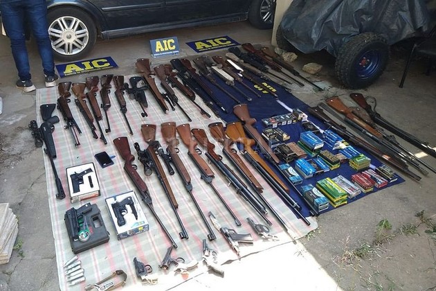 En la vivienda, los uniformados hallaron 27 rifles de aire comprimido; 4 revólveres (3 calibre .22 y uno 1 calibre .32); 1 pistola calibre .22; 1 carabina calibre .22, 2 fusiles calibre .43; 1 escopeta calibre 36; 1 escopeta calibre 16 yuxtapuesta; 3 pistolas CO2; 1733 municiones de diferentes calibres y marcas; y 96 estuches de balines de aire comprimido de diferentes marcas y calibres.