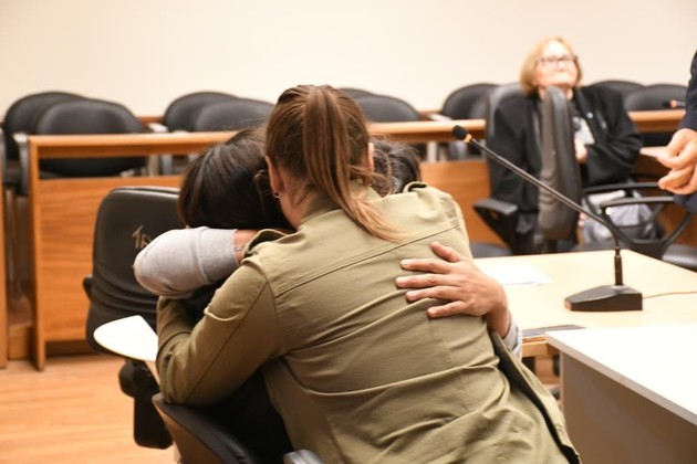 El conmovedor abrazo de la madre de la víctima y su familia al término del debate. Foto: Flavio Raina