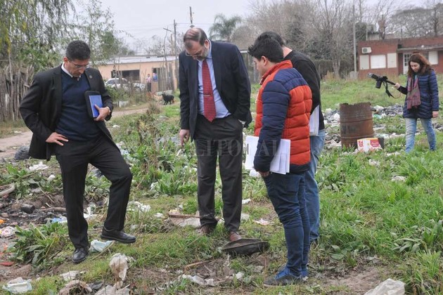 Flavio Raina El fiscal Nessier (der.) y el comisario Monzón (izq.) a metros del tacho donde fue hallado el cuerpo del policía.Flavio Raina El fiscal Nessier (der.) y el comisario Monzón (izq.) a metros del tacho donde fue hallado el cuerpo del policía.