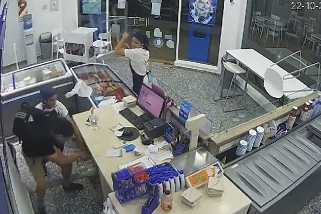 Las imágenes muestran cómo las trabajadoras no se amedrentaron frente al ladrón, quien había irrumpido en el local buscando dinero, y lo enfrentaron antes de que pudiera llevarse la recaudación.