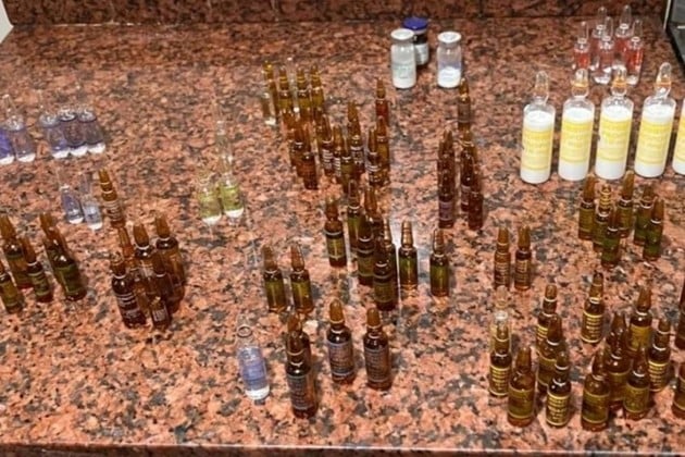 Durante la inspección del inmueble, la Policía secuestró varias ampollas de medicamentos, una jeringa y un guante descartable de látex. Entre los fármacos hallados figuraban propofol, fentanilo, lidocaína, clonazepam, midazolam, diazepam, haloperidol y otras drogas de uso hospitalario.