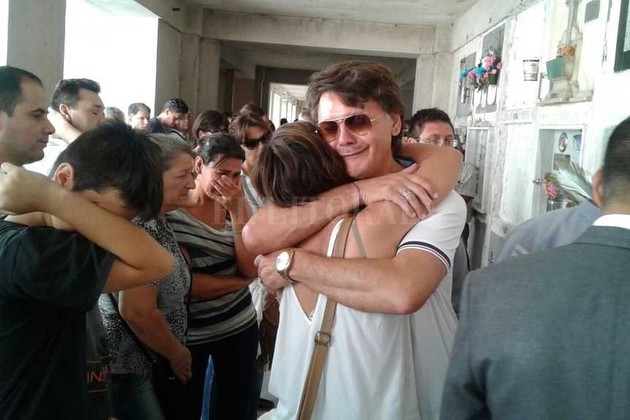 La mujer apenas se podía sostenerse en pie. De igual modo demostró gran entereza llevando en brazos a la pequeña Mia y a Nacho (sus hijos), para que ellos también pudiesen dar el último adiós a su padre.