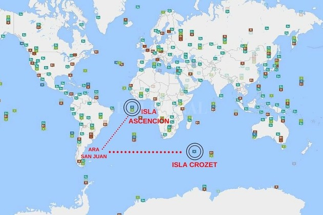 La estación en la isla británica, que está a mitad de camino entre América y África, tiene los equipos de medición hidroacústica de anomalías sísmicas a 7.000 kilómetros de la costa patagónica. Allí se notificó la última comunicación del submarino, mientras que el archipiélago francés, situado al sur-sureste de Sudáfrica, se encuentra a 10.000 kilómetros de distancia.
