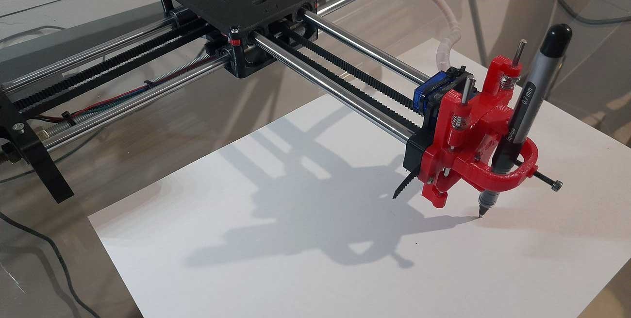 "Este tipo de desarrollo mecánico tiene su antecedente en un instrumento que se llama pantógrafo. Es un aparato que tiene brazos articulados, que copiaba un modelo escrito a escala. Pero el pantógrafo tenía un grave defecto, generalmente reproducía la firma o parte de ella, con una dirección inversa a la que presentaba la firma real.