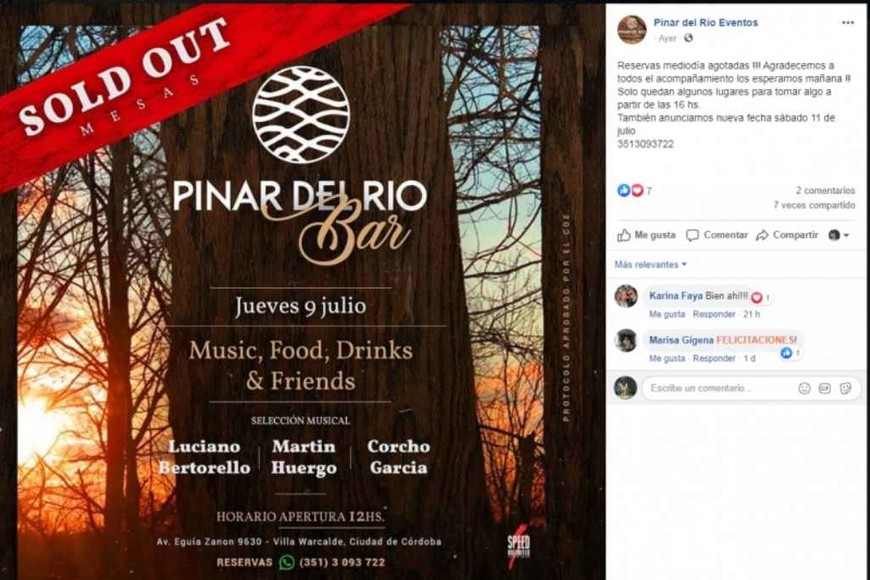 Según repasó la Justicia en un comunicado oficial, el evento fue "masivo" y se realizó "en el establecimiento Pinar del Río con aproximadamente 270 personas, sin cumplir con las medidas sanitarias dispuestas por el COE".