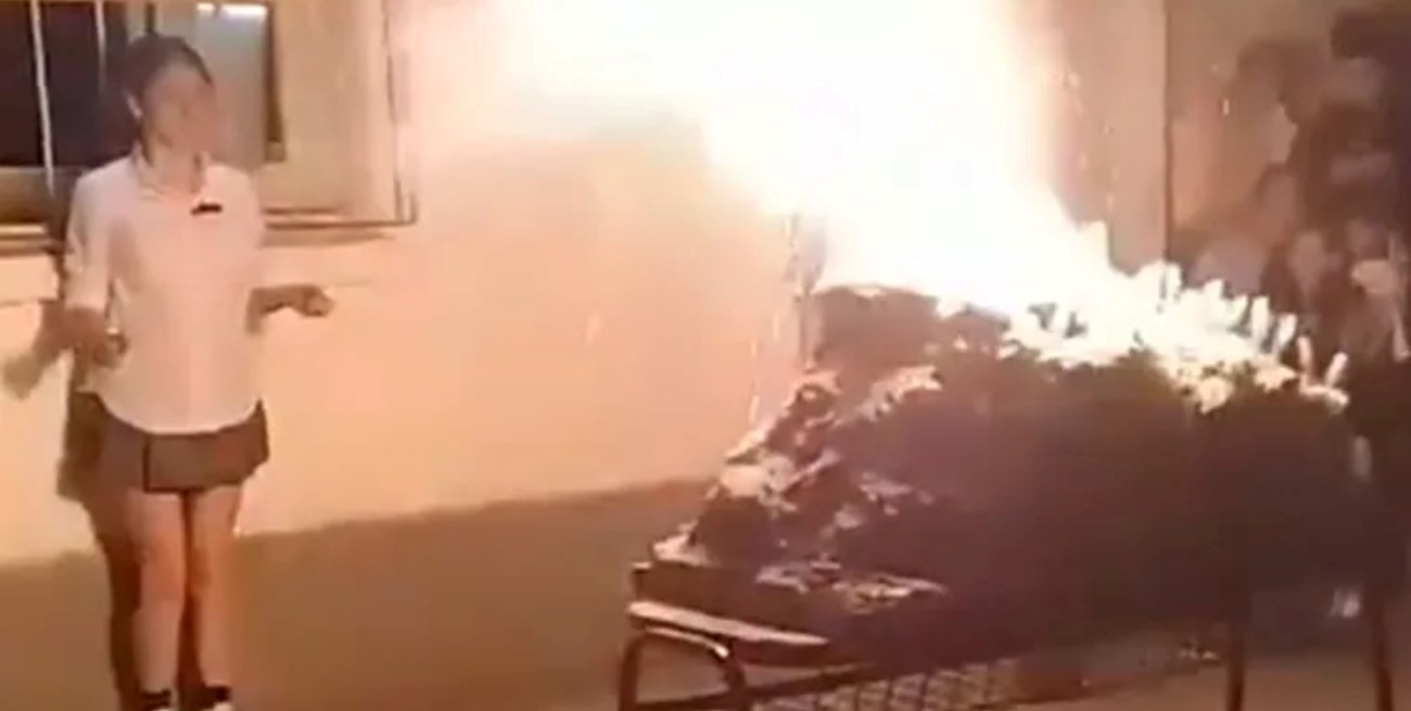 Los minutos previos al incidente quedaron registrados en video, donde la alumna advertía a sus compañeros: “Hay que tener cuidado”. Lo que parecía una demostración controlada se convirtió en pánico cuando la mezcla utilizada reaccionó de manera inesperada.