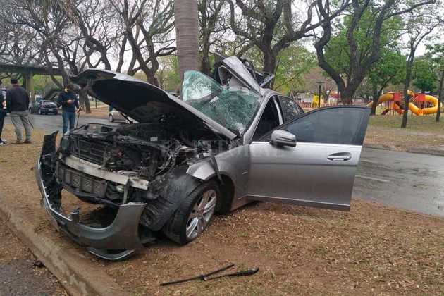 El vehículo involucrado es un sedán marca Mercedes Benz que quedó incrustado en una de las palmeras del cantero central.