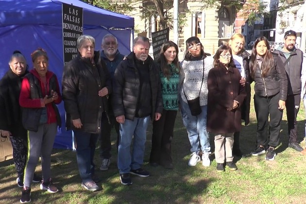 Este lunes por la mañana se desarrolló frente a tribunales una carpa con familiares de acusados por delitos de violencia de género que exigieron a la justicia que actúe frente a las “denuncias falsas” que sufrieron.