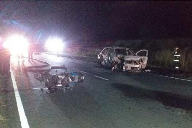 En base a las fuentes policiales, una moto Kawasaki Versys en la que circulaban dos personas chocó de frente contra una camioneta Chevrolet Tracker. Según el relato de algunos testigos, la moto habría sufrido una explosión, tras lo que se habría incendiado e impactado contra el otro vehículo.