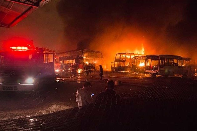 Las llamas comenzaron a las 20.30, presuntamente en el interior de uno de los micros de larga distancia, propagándose luego a los otros vehículos.