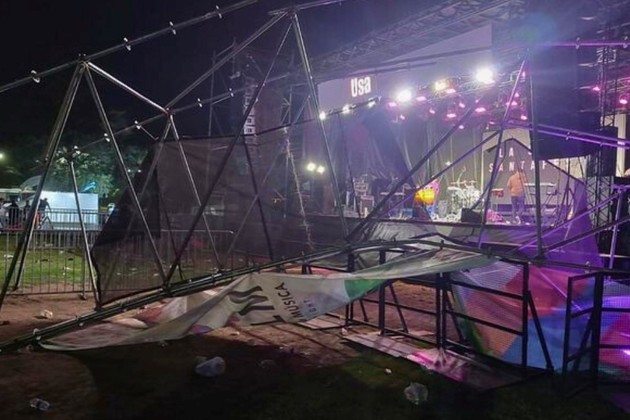 Parte del escenario terminó cediendo producto de los fuertes vientos.