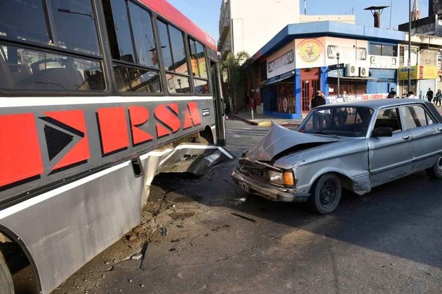 Un Ford Falcon cruzó un semáforo en rojo a alta velocidad y chocó contra un colectivo de la línea Ersa en bulevar Guzmán y San Jerónimo, pleno centro de la ciudad de Córdoba.