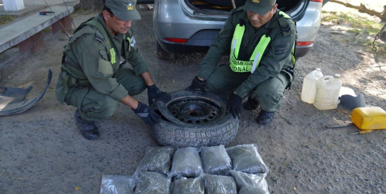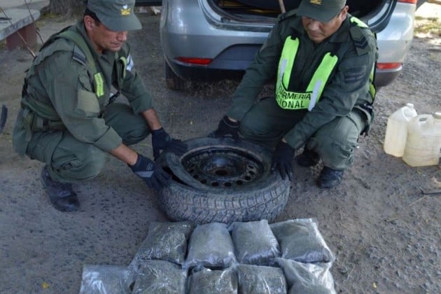 Se encontraron 28 paquetes de "cannabis sativa" ocultos en el tanque de combustible y la rueda de auxilio del automóvil.