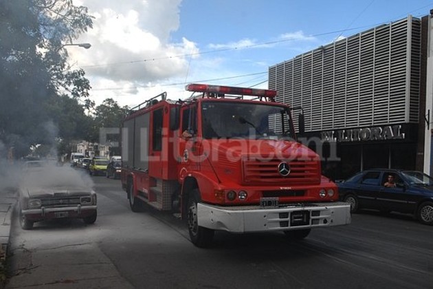 Un accidente de llamativas características se produjo en las primeras horas de la tarde de hoy cuando un motociclista se distrajo e impactó desde atrás a un vehículo estacionado en un semáforo. Todo ocurrió mientras una dotación de Bomberos apagaba el fuego de un auto que se incendiaba.