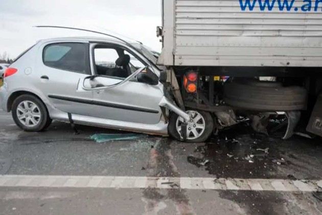 Un fuerte choque se produjo este martes por la mañana en la autopista Rosario - Buenos Aires cuando un auto terminó incrustado debajo de la parte trasera de un camión.
