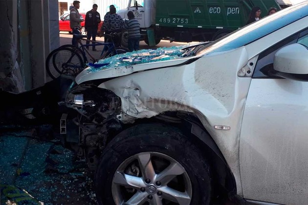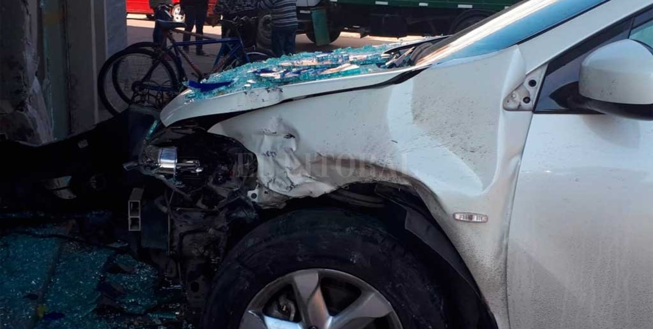 Producto del impacto, el vehículo marca Nissan impactó contra el frente (de blindex) de un gimnasio ubicado en una de las ochavas de la mencionada zona.