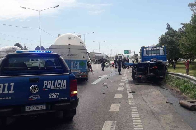 Policías de la Unidad Operativa Regional 4, Rosario, intervinieron en un siniestro vial ocurrido en ruta nacional 8, altura del Km 19 aproximadamente, en el que participaron dos camiones (uno de ellos con carga peligrosa) y que dejó como saldo dos personas heridas de gravedad.
