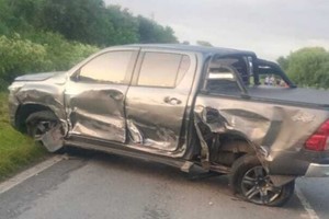 Como consecuencia del encontronazo varios de los cascos de lancha quedaron tumbados del trailer, en tanto la camioneta presentaba un fuerte impacto del lado del conductor. Por su parte el otro camión salió de la cinta asfáltica y terminó en la banquina entre unos árboles.