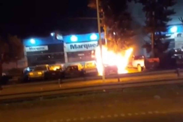 Cientos de personas protestaban por el crimen del chofer de la línea 218, asesinado de un disparo en la cabeza en Virrey del Pino. La manifestación se fue de control cuando compañeros de la víctima incendiaron patrulleros y autos secuestrados frente a la comisaría ubicada en la ruta 3.