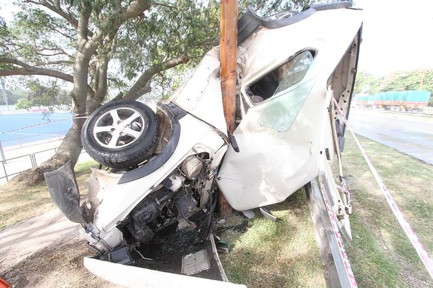 El auto quedó “enroscado” en un poste de alumbrado público. El único ocupante del vehículo fue trasladado al hospital Cullen.
