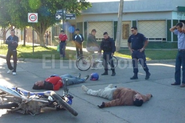En dicho lugar, y por cuestiones que se tratan de establecer, colisionaron un Renault 9, dominio RUI 003, a cargo de Florentino Alegre, de 49 años, y la moto Guerrero 110, en la que se trasladaban Osvaldo Robledo, de 48, junto a Carlos Ismael Valter, de 34.