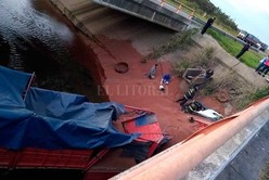 Agentes policiales de seguridad vial trabajaron en el balizamiento y control vehicular a raíz de un siniestro donde un camión con acoplado habría despistado por el cantero central en zona del puente en el km 131 cayendo en el arroyo y el conductor se encontraba atrapado.