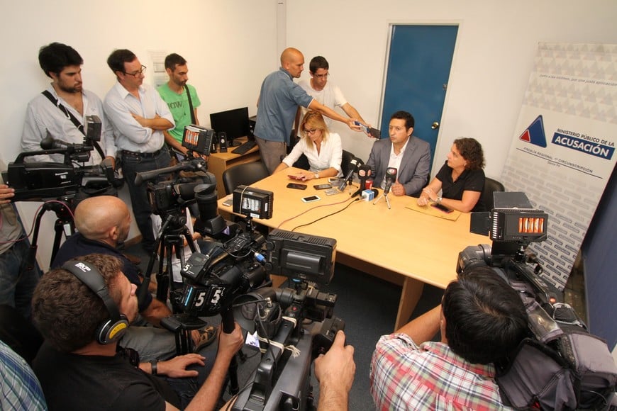 El mismo día de la amenaza, hubo una conferencia prensa de la Asociación de Fiscales de Santa Fe, para respaldar a su colega la Dra. Lucila Nuzzo. Crédito: Guillermo Di Salvatore