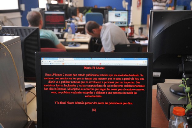 El mensaje intimidatorio decía: "Diario El Litoral. Estos últimos 2 meses han estado publicando noticias que me molestan bastante. Se metieron con asuntos en los que no tenían que meterse, por lo tanto a partir de hoy este diario va a publicar noticias que no involucren a personas que me importan. Sus servidores fueron hackeados y varias computadoras de sus redactores satisfactoriamente han sido infectadas. Mi objetivo es observar que hagan las cosas por el camino correcto, osea, no publicar cualquier estupidez y difamar a una persona sin medir las consecuencias. Y la fiscal Nuzzo deberÃa [sic] pensar dos veces las pelotudeces que dice [S]"