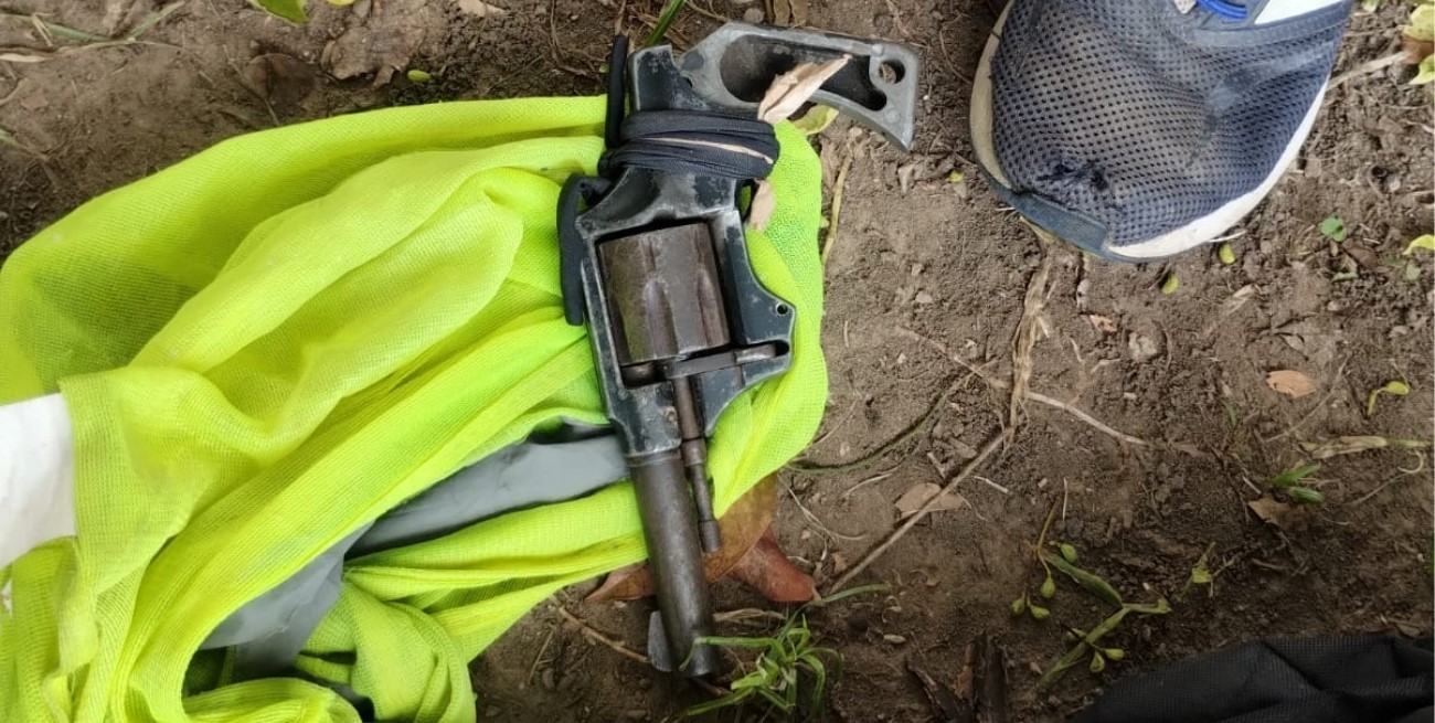 El sospechoso fue demorado en la zona de Mariano Comas y Francia y trasladado a la comisaría. Mientras tanto, efectivos revisaron el techo de la vivienda señalada y encontraron la mochila. Dentro de la misma había un revólver calibre 32 en estado precario.