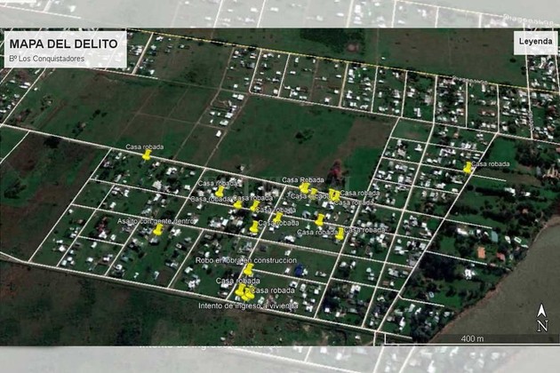 Desesperados, los habitantes de la zona confeccionaron un mapa del delito y con puntos amarillos señalaron los domicilios siniestrados.