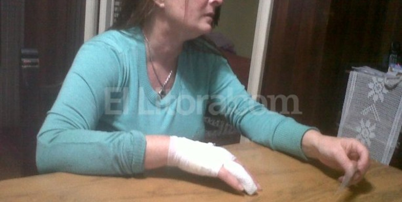 Varios sujetos en moto se cruzan en su camino y dos la atracan. En su intento de preservar el maletín que los maleantes intentaban llevarse resulta con varias lesiones ya que la arrastraron por el piso, la golpearon y le fracturaron un dedo de la mano. Además tiene un esguince de tobillo.