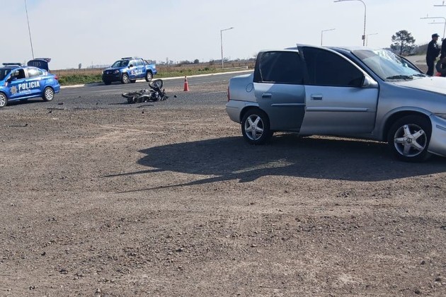 Por causas a determinar, chocaron un Chevrolet Corsa conducido por una mujer de 28 años y una moto Motomel 150 manejada por un hombre de 34 años, ambos de esa ciudad.