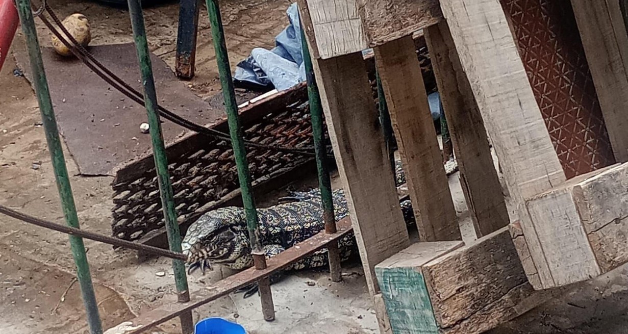 El llamado lo realizó un hombre de 31 años, cuyos datos personales no trascendieron, quien indicó el lugar donde se guarecía la iguana, entre medio de pallets y trastos viejos de lo que pareciera ser el patio de una casa o depósito.