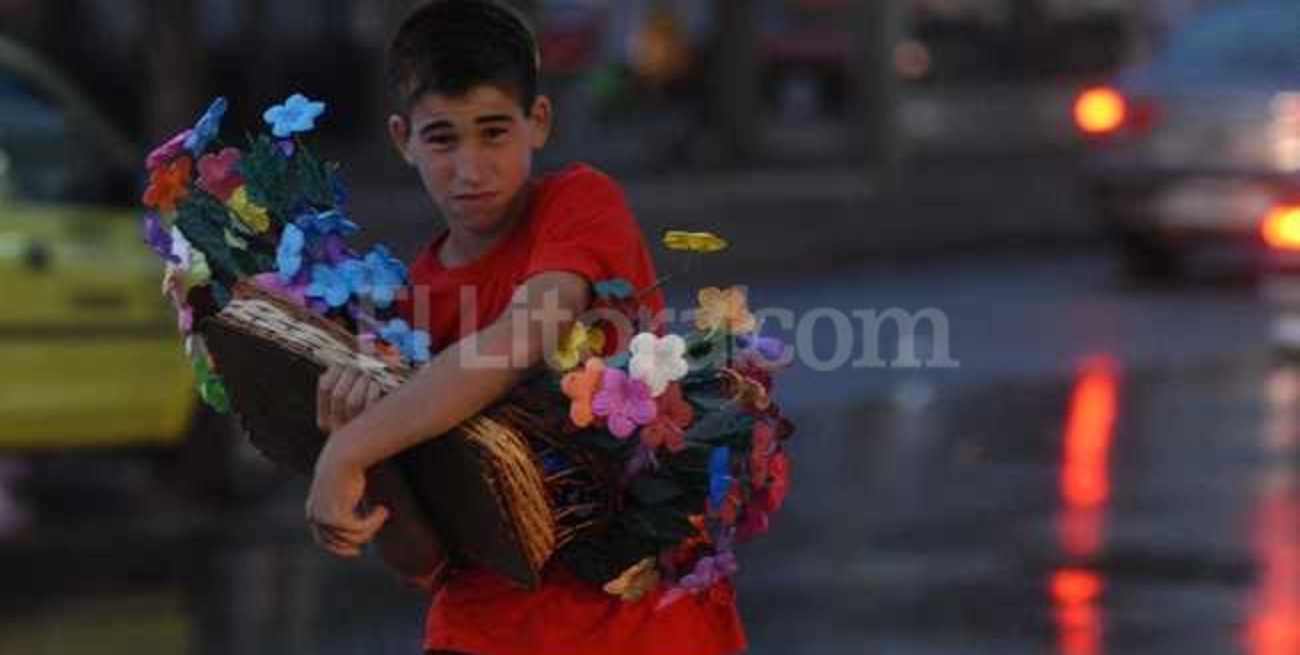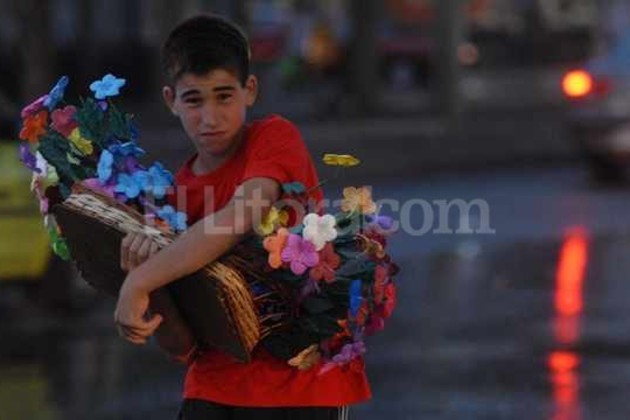 “Las fotos que tenía en mente eran de la gente que sorprendida por la reciente tormenta y buscaba protección para no mojarse. Fue entonces que vi a este chico que venía al paso ligero desde Bulevar para refugiarse en la estación de servicio. Yo ya lo conocía como vendedor de flores, siempre andaba por los bares de la Recoleta junto a su hermana, tenía muy buena «parla» para la venta, siempre con buenos tratos”, comentó Flavio y agregó: “Cuando lo vi venir con su canastita repleta de flores y en pleno proceso de tormenta lo fotografié, y la foto salió linda".