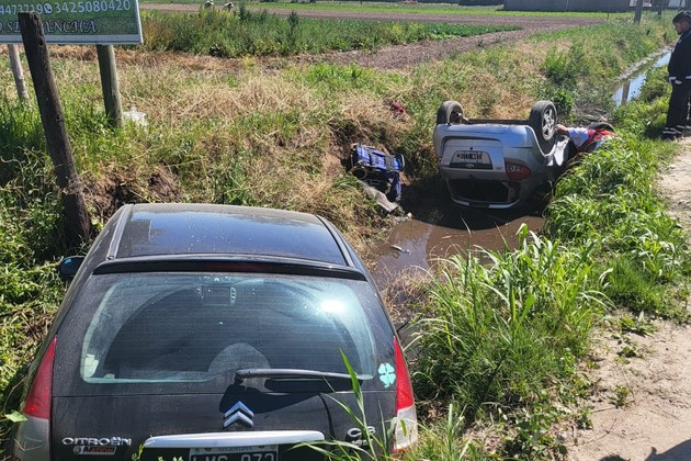 Como consecuencia del encontronazo uno de los rodados salió de la cinta asfáltica y cayó dentro de una cuneta donde terminó dando un vuelco. El otro vehículo también terminó dentro de la cuneta.