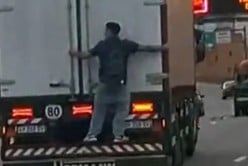 Video: un joven viajó colgado de un camión en plena autopista Buenos Aires-La PlataManiobra peligrosa