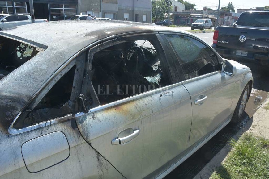 Este jueves por la mañana, todavía se podían ver los rastros de las llamas en el coche que quedó estacionado en el lugar.Foto: Flavio Raina