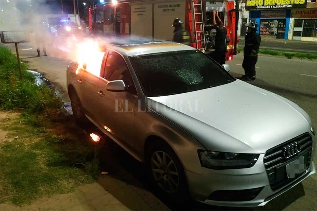 Un auto Audi A4 ardió este jueves por la madrugada, en uno de los principales accesos a la ciudad de Santa Fe. Fue un incendio intencional, según el informe de la central de monitoreo, que registró a dos sujetos escapando a la carrera apenas se iniciaron las llamas.