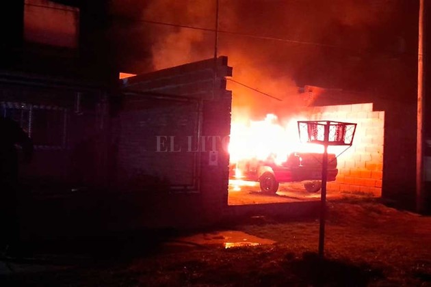 Ni bien los oficiales arribaron constataron que en el lugar se estaba incendiando un Renault 19 que estaba en una cochera abierta, sin techo ni aberturas.