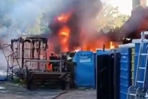 Fuego y evacuaciones en La Plata por el incendio de un depósito de baños químicos