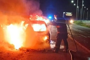 La noche avanzaba sin sobresaltos en la Circunvalación Oeste de la ciudad de Santa Fe hasta que, a las 23, un resplandor anaranjado rompió la monotonía del tránsito escaso. A la altura de Cilsa, en sentido sur-norte, el fuego empezó a devorar sin pausa la estructura de un automóvil detenido sobre la banquina Este. No hubo gritos ni corridas. Solo llamas.