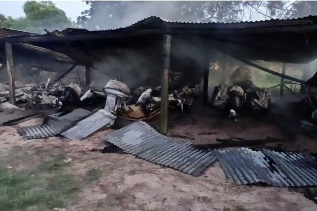 Fuego y destrucción total en una guardería de lanchas en Santa Rosa de Calchines