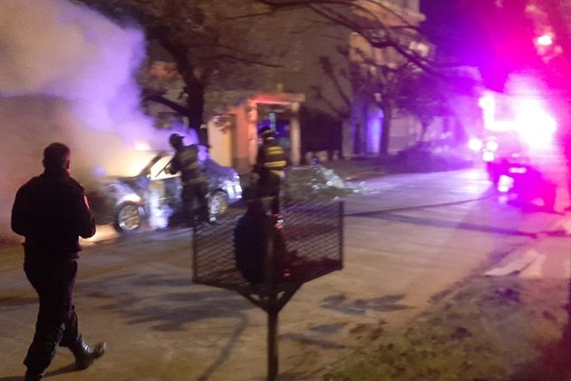 Los efectivos de la Comisaría 9na, tras recibir el aviso del 911, fueron quienes primero llegaron al lugar y encontraron un Peugeot 207 Compact, de color gris, envuelto en llamas.